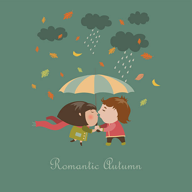 little girl and boy kissing in the rain